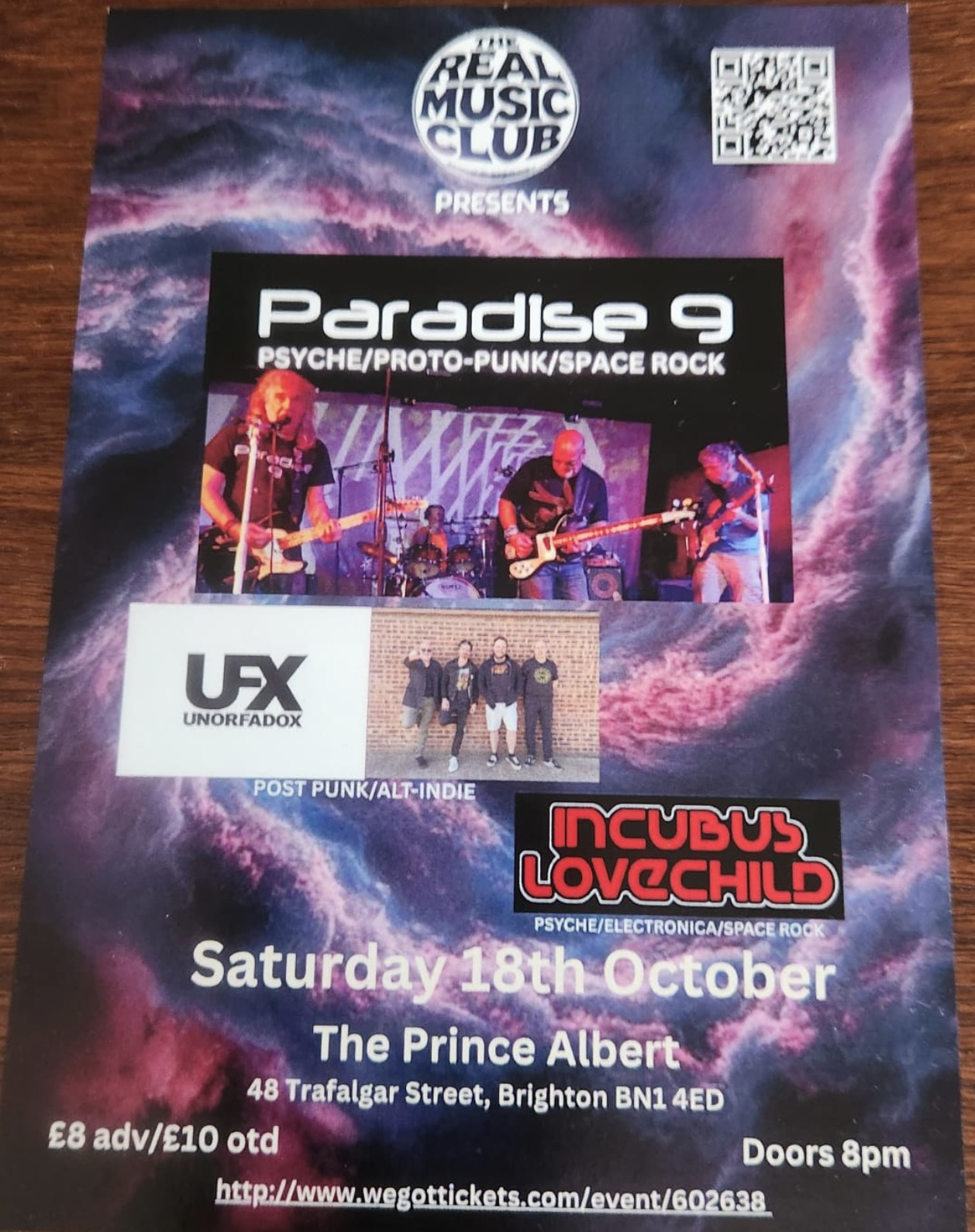 Gig – Sat 18th Oct – Paradise 9 / UFX / incubus lovechild